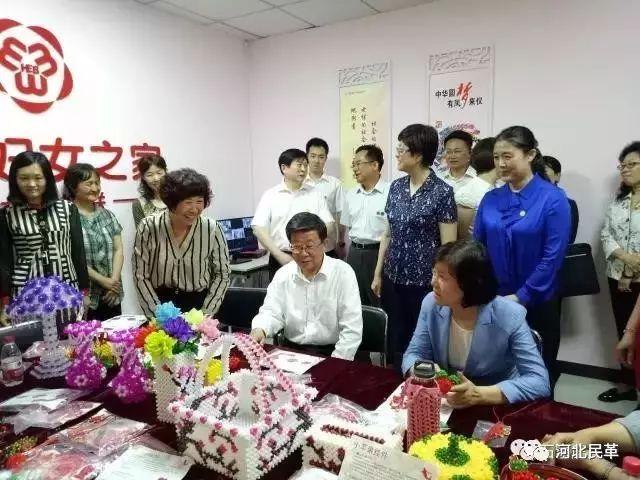 5月26日下午,全國人大常委會副委員長、全國婦聯(lián)主席沈躍躍蒞臨民革石家莊市委會長安二支部黨員楊千惠的手工編織社區(qū)課堂,專門視察婦女工作。中共河北省委書記、省人大常委會主任趙克志,中共河北省委常委、石家莊市委書記邢國輝等省市相關(guān)領(lǐng)導陪同視察?,F(xiàn)場領(lǐng)導們親切詢問了楊千惠婦女手工編織發(fā)展前景,就婦女手工編織再就業(yè)情況進行了親切地交流,楊千惠就領(lǐng)導提出的問題進行了詳細解答。