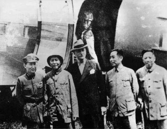1945年8月28日,毛澤東赴重慶前在延安機(jī)場留影