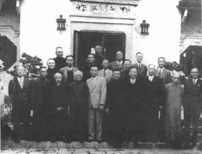 1946年10月17日,國共雙方代表和第三方面人士在上海吳鐵城公館前合影