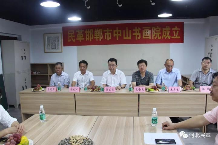 9月9日,民革邯鄲市中山書畫院在金業(yè)大廈舉行成立儀式。邯鄲市政協(xié)副主席、民革邯鄲市委主委、邯鄲市民宗局局長(zhǎng)馬宏志,中共邯鄲市委統(tǒng)戰(zhàn)部副部長(zhǎng)、邯鄲市社會(huì)主義學(xué)院黨組書記馮士廣,邯鄲市文聯(lián)黨組書記、主席張全民,民革邯鄲市委副主委王志生、牛建萍、王建波等出席成立儀式。儀式由王志生主持。