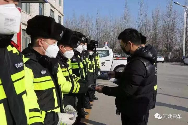 張家口民革黨員歐陽玉胤來到張家口交警支隊直屬四大隊把自購的價值3萬余元的600副醫(yī)用護(hù)目眼鏡送到在崗民警手中。