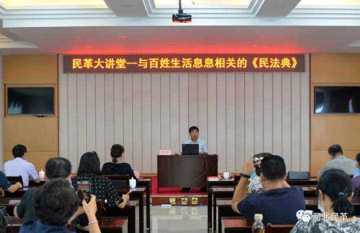 ?8月9日下午,“民革大講堂——與百姓生活息息相關(guān)的《民法典》”在省民主黨派大樓開講,此次講座由民革河北省委會副主委、省高級人民法院副院長甄樹清主持,民革河北省委會社法委副主任、省高級人民法院民三庭副庭長宣建新授課。民革河北省委會駐會副主委梁立敏帶領(lǐng)民革省委會機(jī)關(guān)全體人員,民革石家莊市委會駐會副主委喬茜及石家莊民革黨員共50余人現(xiàn)場聽講,本次活動面向全省民革黨員進(jìn)行網(wǎng)絡(luò)直播,共600余名民革黨員網(wǎng)絡(luò)聽講。