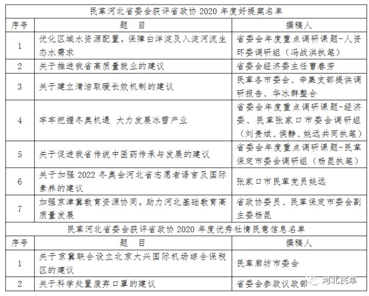 民革河北省委會(huì)多件成果獲評(píng)省政協(xié)2020年度好提案、優(yōu)秀社情民意信息