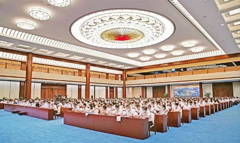 2021年7月,中央宣傳部、中央黨史和文獻(xiàn)研究院、中央和國家機(jī)關(guān)工委、教育部、中央軍委政治工作部、中共北京市委在京聯(lián)合舉辦學(xué)習(xí)貫徹習(xí)近平總書記“七一”重要講話精神系列專題宣講報(bào)告會。圖為7月5日拍攝的報(bào)告會會場。?新華社記者?陳曄華/攝