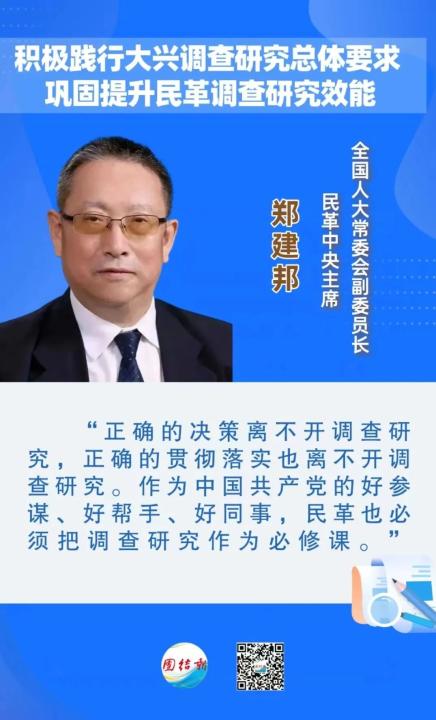 正確的決策離不開調(diào)查研究,正確的貫徹落實也離不開調(diào)查研究。作為中國共產(chǎn)黨的好參謀、好幫手、好同事,民革也必須把調(diào)查研究作為必修課。今天,我們在這里集體學(xué)習(xí)《工作方案》,既是深入學(xué)習(xí)貫徹習(xí)近平新時代中國特色社會主義思想、全面貫徹落實中共二十大精神的實際行動,也是進(jìn)一步加強新時代中國特色社會主義參政黨建設(shè),提高履職實效的有益實踐。