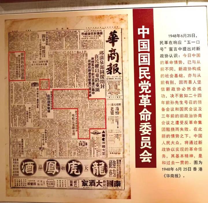 1948年春,中國所面臨的“兩種命運、兩種前途”已涇渭分明,國民黨已是強弩之末。為了迎接新中國誕生,4月30日,中共中央在西柏坡發(fā)布了《紀念“五一”勞動節(jié)口號》。短短時間內(nèi),各民主黨派、各人民團體、海外華僑團體和無黨派民主人士紛紛以發(fā)表通電、聲明、宣言、告全國同胞書等方式,積極響應(yīng)中國共產(chǎn)黨的號召。展廳內(nèi),便展示了《華商報》刊發(fā)的民革響應(yīng)“五一口號”的聲明,中心組成員紛紛上前仔細閱讀。