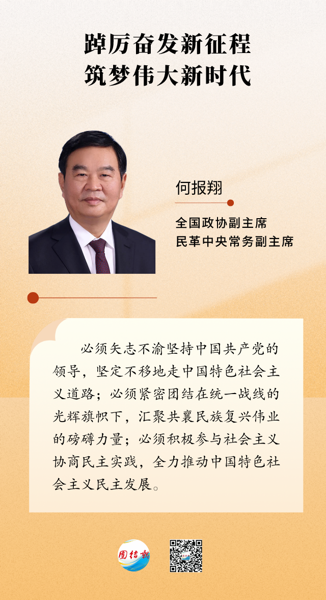 在人民民主統(tǒng)一戰(zhàn)線這面旗幟指引下,我們靠團(tuán)結(jié)奮斗創(chuàng)造了輝煌歷史。我們還要靠團(tuán)結(jié)奮斗開辟美好未來。當(dāng)前,全面建設(shè)社會(huì)主義現(xiàn)代化國家的任務(wù)艱巨,這更需要不斷鞏固和發(fā)展最廣泛的愛國統(tǒng)一戰(zhàn)線,團(tuán)結(jié)一切可以團(tuán)結(jié)的力量,充分發(fā)揮億萬人的創(chuàng)造偉力,心往一處想、勁往一處使。民革要更加自覺地團(tuán)結(jié)在中國共產(chǎn)黨領(lǐng)導(dǎo)的統(tǒng)一戰(zhàn)線光輝旗幟下,與全國各族人民團(tuán)結(jié)成“一塊堅(jiān)硬的鋼鐵”,不斷發(fā)展壯大團(tuán)結(jié)奮斗的力量,共同推動(dòng)統(tǒng)一戰(zhàn)線事業(yè)不斷向前發(fā)展,為譜寫以中國式現(xiàn)代化全面推進(jìn)中華民族偉大復(fù)興的偉大篇章而同心奮斗。