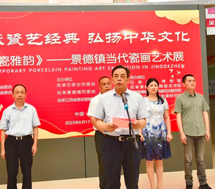 民革江西省委會(huì)專職副主委、江西省政協(xié)副秘書長熊彤,民革河北省委會(huì)專職副主委、河北省政協(xié)副秘書長劉建成,中共石家莊市委統(tǒng)戰(zhàn)部常務(wù)副部長張明其,民革江西省委會(huì)瓷畫院院長、中國工藝美術(shù)大師劉文斌,民革景德鎮(zhèn)市委會(huì)主委王筱松和民革河北省委會(huì)、民革江西省委會(huì)的相關(guān)處室負(fù)責(zé)同志以及民革黨員共80余人參加了開幕式。