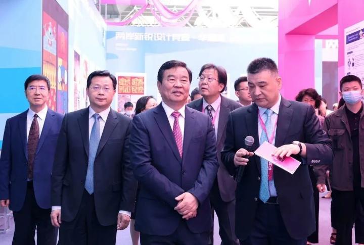 5月23日,全國政協(xié)副主席、民革中央常務(wù)副主席何報翔(前排中)參觀華燦設(shè)計(jì)作品展。