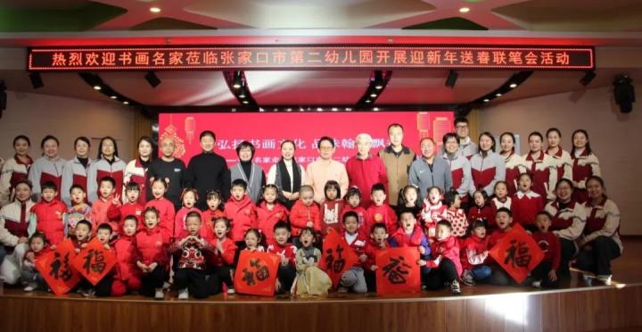 2023年12月28日,民革張家口中山書畫社組織書畫家走進(jìn)張家口市第二幼兒園,以“春聯(lián)筆會”的形式向市二幼全體師生送上新年的問候與祝福。民革張家口市委會班子成員及書畫家代表等參加活動。