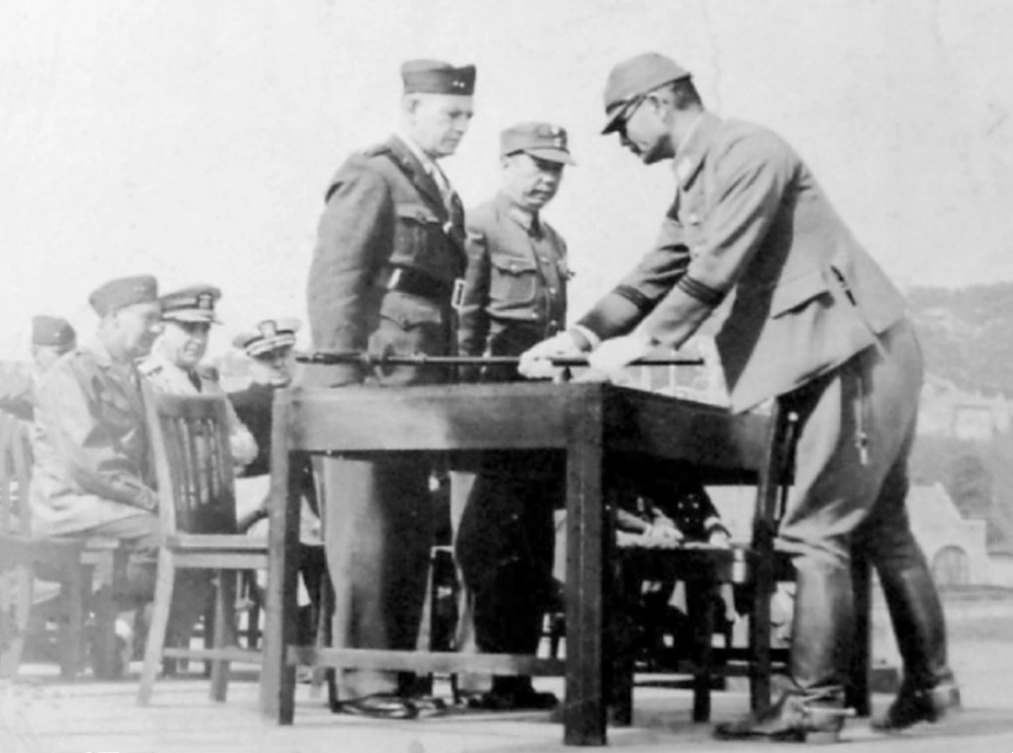陳寶倉將軍(中)在青島接受日軍投降