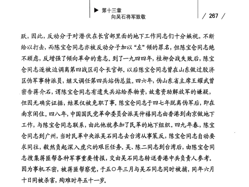 《吳石傳》中李濟(jì)深《悼念陳寶倉同志》祭文節(jié)選