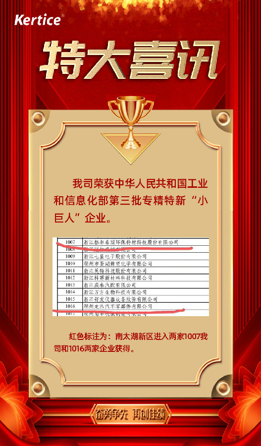 我司榮獲中華人民共和國工業和信息化部第三批專精特新“小巨人”企業